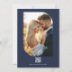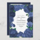 Navy Blue Floral Photo and QR Code Wedding Inbjudningar