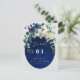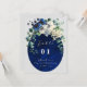 Featuring a deep navy blue geometric background with delicate floral details, this design coordinates seamlessly with a complete wedding stationery suite. The clean layout keeps the table number as the focal point, ensuring visibility from a distance.