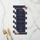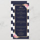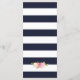 Elegant navy blue and white striped floral wedding menu featuring watercolor blush pink flowers and gilded greenery. Matching items available.