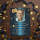 This captivating invitation features a rich, deep navy blue background with a shimmering, brushed metal texture. The design is accented with luxurious gold glitter bokeh effects and sparkling confetti, creating a high-end, luxury feel. Easily upload a cherished photo to personalize the card, making it a truly unique keepsake. The prominent, stylized '60' in bold gold immediately highlights the significance of this major birthday milestone. Use the template fields to update the guest of honor's name, the date, the time, and the venue details.