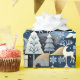 Navy Blue Gold Nordic Christmas Forest Pattern Presentpapper