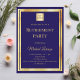 Navy blue gold retirement party business logo inbjudningar