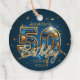 Add a touch of luxury to your milestone celebration with these elegant navy and gold party accessories. The design features a stunning deep blue background embellished with scattered gold confetti and a large number "50" typography filled with faux sapphires, blue beads, and gold detailing. These are perfect for attaching to wine bottles, gift bags, or treat boxes to say "Thank You" to your guests in style. Please note: The metallic and gemstone effects are high-quality printed graphics, not real foil or 3D jewels.
