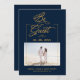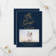 Navy Blue & Golden Sophisticated Minimalist Photo Elegant Script Save the Date Card with Envelope.
