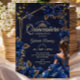 Navy Blue Golden Tiara Roses Quinceañera Inbjudningar