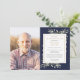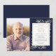 En elegant personlig botanisk akvarell i marinblå med grönska firande av liv minnesinbjudan. Designad av Thisisnotme©