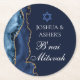 Elegant marinblått och guld agate dekorerar detta B'nai Mitzvah party pappra underlägg för en judisk familj som firar att deras barn har kallats till Torah. De två namnen är skrivna i ett vackert högtidligt manus under David stjärna för ett gemensamt firande.