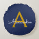 Navy Blue Guld Modern Script Girly Monogram Namn Rund Kudde