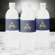 Navy Blue Guld Modern Script Girly Monogram Namn Vattenflaskor Etikett