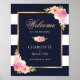 Navy Blue Guld Rosa Blommigt Bröllop Välkomstskylt Poster