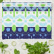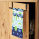 Den blå bakgrunden kan växlas till vilken färg som helst på denna kalkgröna, pulverblåa och vita plågade kökshandduk, söt presentidé.