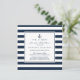 Maritimt inspirerad baby shower inbjudan med marinblå och vita ränder och ett ankare. Personalisera denna nautiska baby shower inbjudan genom att lägga till dina detaljer.