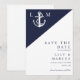 Navy Blue Marin Minimalistisk Monogram Bröllop Spara Datumet