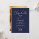 Den här marinblåa minimalistiska eleganten-manusbjudan kan vara personlig med din information i chic typografi och speciella foto på motsatt sida. Designad av Thisisnotme©