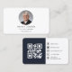 Navy Blue Modern Photo med QR Code Social Media Visitkort