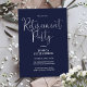 Den här pension-festinbjudan till marinblått elegant-skript kan vara personlig med all din speciella firande-information. Designad av Thisisnotme©