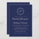 Navy Blue Monogram Wandewhite Bröllop Inbjudningar