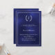 Navy blue monogram wreath milestone age-neutral inbjudningar