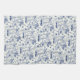 An intricately detailed pattern featuring a field of of deep blue mushrooms and wildflowers on a white background.