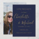 spara datumetbröllopsignatur skriftminimalistiskelegantfotomoderntenkelförlovningmarinblå och guld
