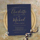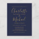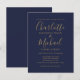 Navy Blue Och Guld Signatur Script Bröllop Inbjudan Vykort