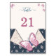 navy blue and pink butterflies floral table number card