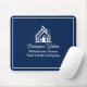 This professional realtor mousepad is custom made with your real estate company name under the modern cursive script for an open house. These chic custom navy blue realty business promotional items feature a house logo image for home builder or realty agent company marketing.
