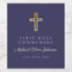 Navy Blue Religious Cross Boy First Communion Wine Label.