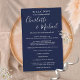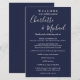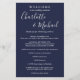 Elegant marinblå signeraturskrift bröllopshelgprogram med signaturstil namn. Anpassa med din bröllopshelg detaljer inställd i chic vit bokstav. Designad av Thisisnotme©