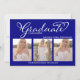 Navy Blue Script Photo Collage Graduation Card Inbjudningar