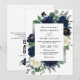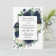 Navy Blue Silver Elegant Floral QR Code Wedding Inbjudningar