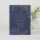 Navy Blue & Silver Grått Blommigt Modern Bröllop Inbjudningar