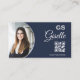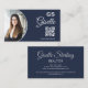 Navy Blue Silver Photo Monogram Realtor QR Code Visitkort