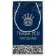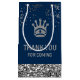 Elegant presentväskor med en vacker silver-krona och vibrerande typografi på blå och faux-glitter-bakgrund.