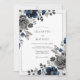 Deep navy blue and slate gray watercolor florals create a sophisticated and moody atmosphere. Large anemones with dark centers are paired with lush roses and delicate sprigs of silver eucalyptus and berries. This cool color palette and the intricate botanical details evoke a formal aesthetic perfect for a cold-weather event.