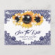Navy Blue Sunflower Lace Wedding Save The Date Meddelande Vykort