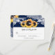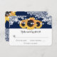 Navy blue rustic floral wedding RSVP card featuring sunflowers and string lights against a burlap background adorned with floral lace. Perfect card design to complement your navy blue rustic country, or barn wedding party inspired by sunflower flowers.
