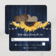 Rustic navy blue and sunflower wedding RSVP card featuring sunflower flowers, string lights and burlap hearts. Perfect card design to complement your navy blue rustic wedding party inspired by sunflowers. Matching items available.
