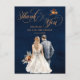 Modern tack för att du har ett romantiskt par (kan ersättas med ett eget foto) med pampas gräs blommigt boho inslag i terracotta, rost, bränd orange och höststuga mot en marin blå bakgrund. Klicka på Anpassa/anpassa för ytterligare redigering.