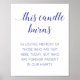 Navy Blue this Candle Burns Memorial Bröllop Poster