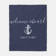 Navy Blue Welcome Aboard Nautical Anchor Boat Namn Fleecefilt