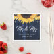 Complement your navy blue rustic wedding party with these floral wedding paper napkins featuring sunflowers and string lights on a rustic wood background. Matching items available.