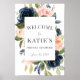 Navy & Blush Blommig Bröllopsfest välkomstskylt Poster