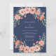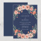 Navy Blush Blommig Krans Bröllop Inbjudningar