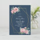 Navy Blush Peony Gold Frame Wedding Inbjudningar
