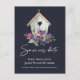NAVY BOHO RUSTIC BLOMMIGT BIRDHOUSE SPARA DATUM MEDDELANDE VYKORT