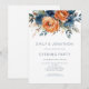 Navy bränd orange blommig bröllop kvällsfest inbjudningar