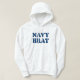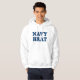 This hoodie is much better than I expected. top quality, true sizing, and really comfy. I was a bit worried that the lettering would be too dark on the navy blue hoodie, but once it arrived it was perfect. Easy to see the words, and the quality of the wording is fabulous. I will be buying more hoodies in future
