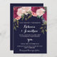 Ett vackert navy bröllopsinbjudande med rosa och burgunderfärgade blommor. Ändra bara detaljerna för att passa dina personliga behov. Perfekt för alla tider på året. Många matchande skyltar och brevpapper i denna kollektion.