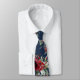 En marin burgnig halslips i bröllop med vattenfärgade burgunda röda ponnyer med silage sage grey mot en fast marin blå bakgrund.